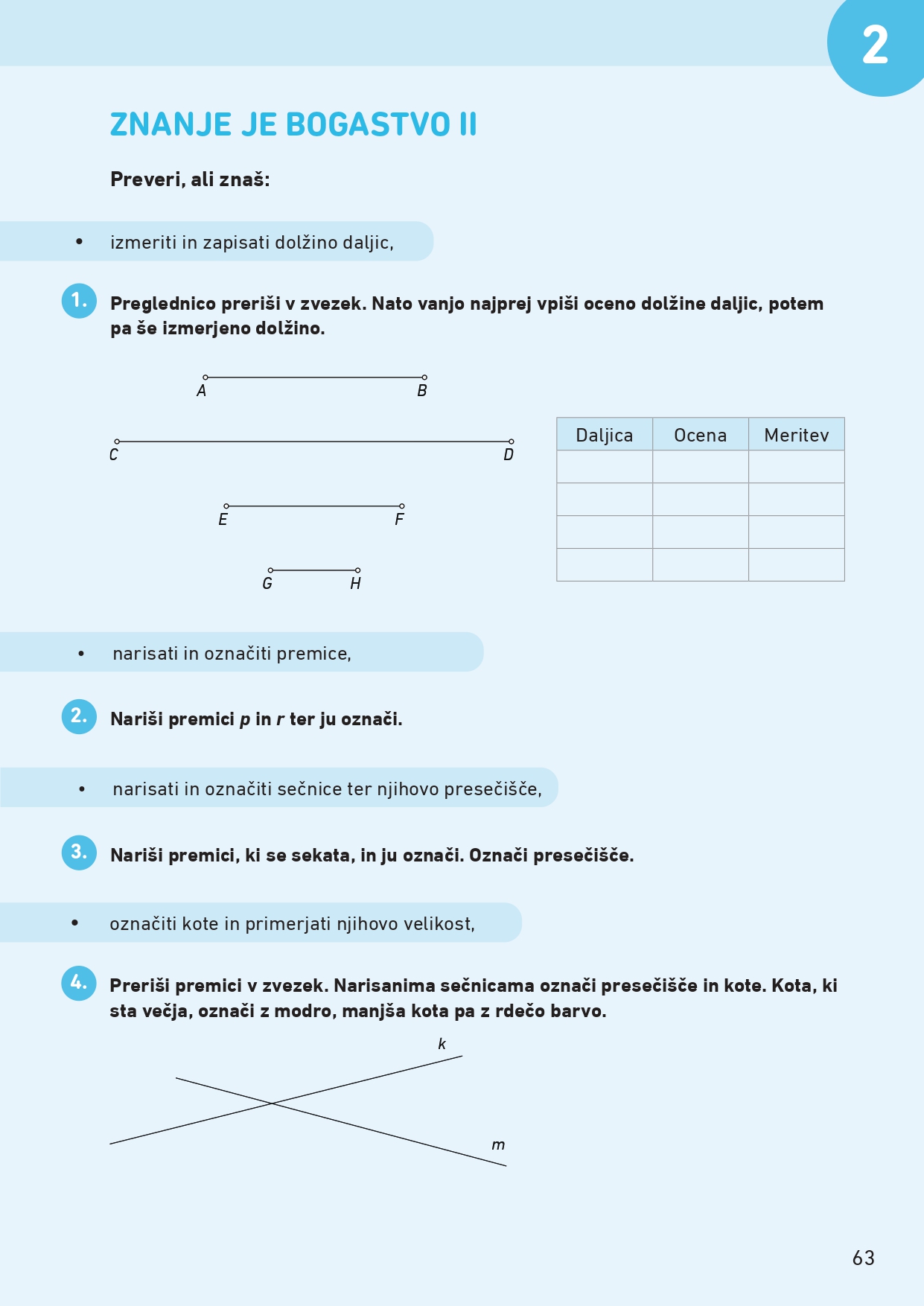 - jasno zasnovane rubrike, kot so Spoznali bomo, Učenost je modrost, Vaja dela mojstra, Kdor spi, rib ne ulovi, Več velja učena glava kakor kup zlata in Znanje je bogastvo, ki strukturirano usmerjajo učenje, postopnost in utrjevanje,