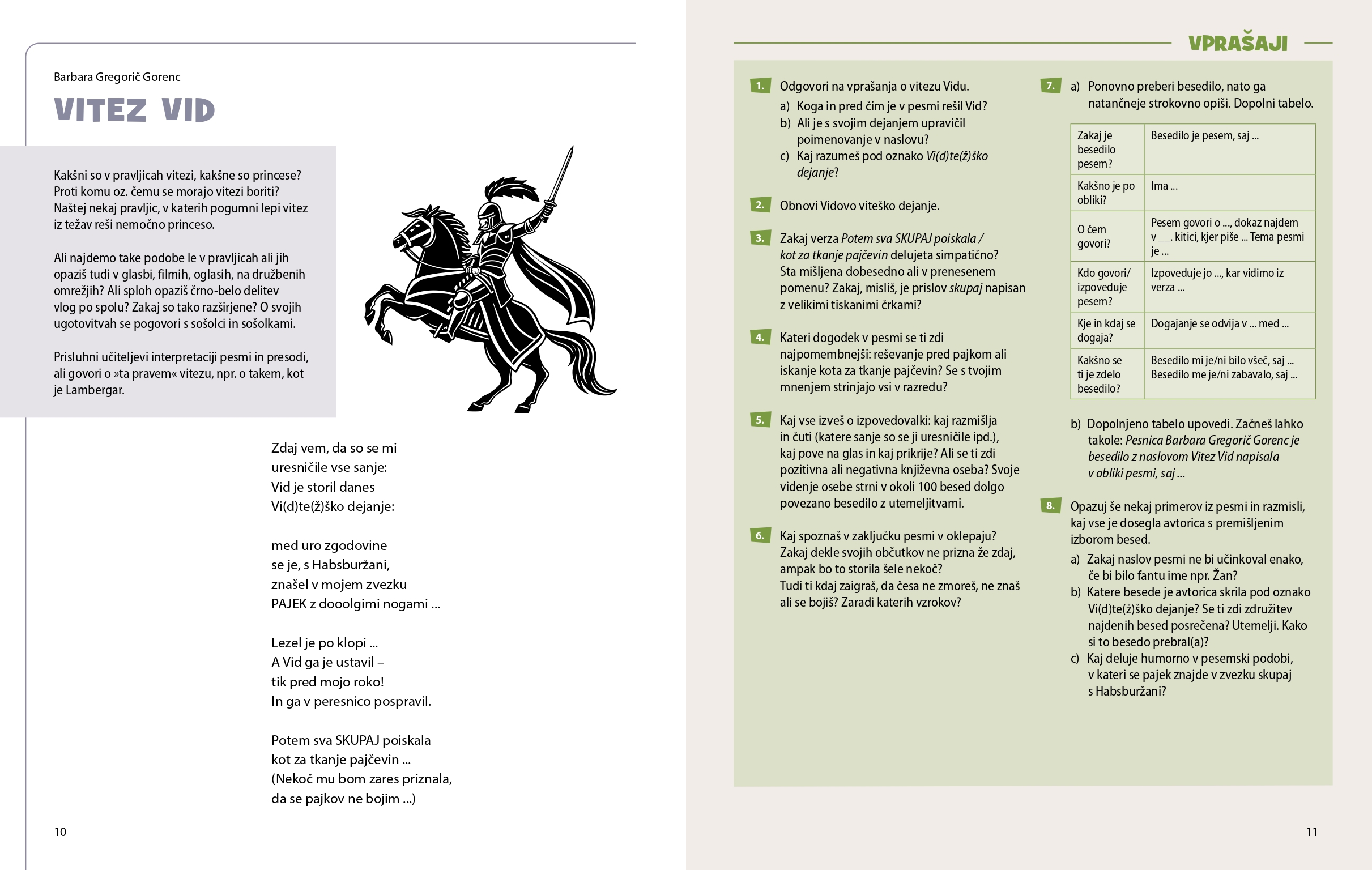 - jasno strukturirane rubrike: dejavnosti pred branjem, vprašanja za razumevanje (Vprašaji), ustvarjalni izzivi (Izzivi) in rubrika Knjižnica za nadaljnje branje in raziskovanje,