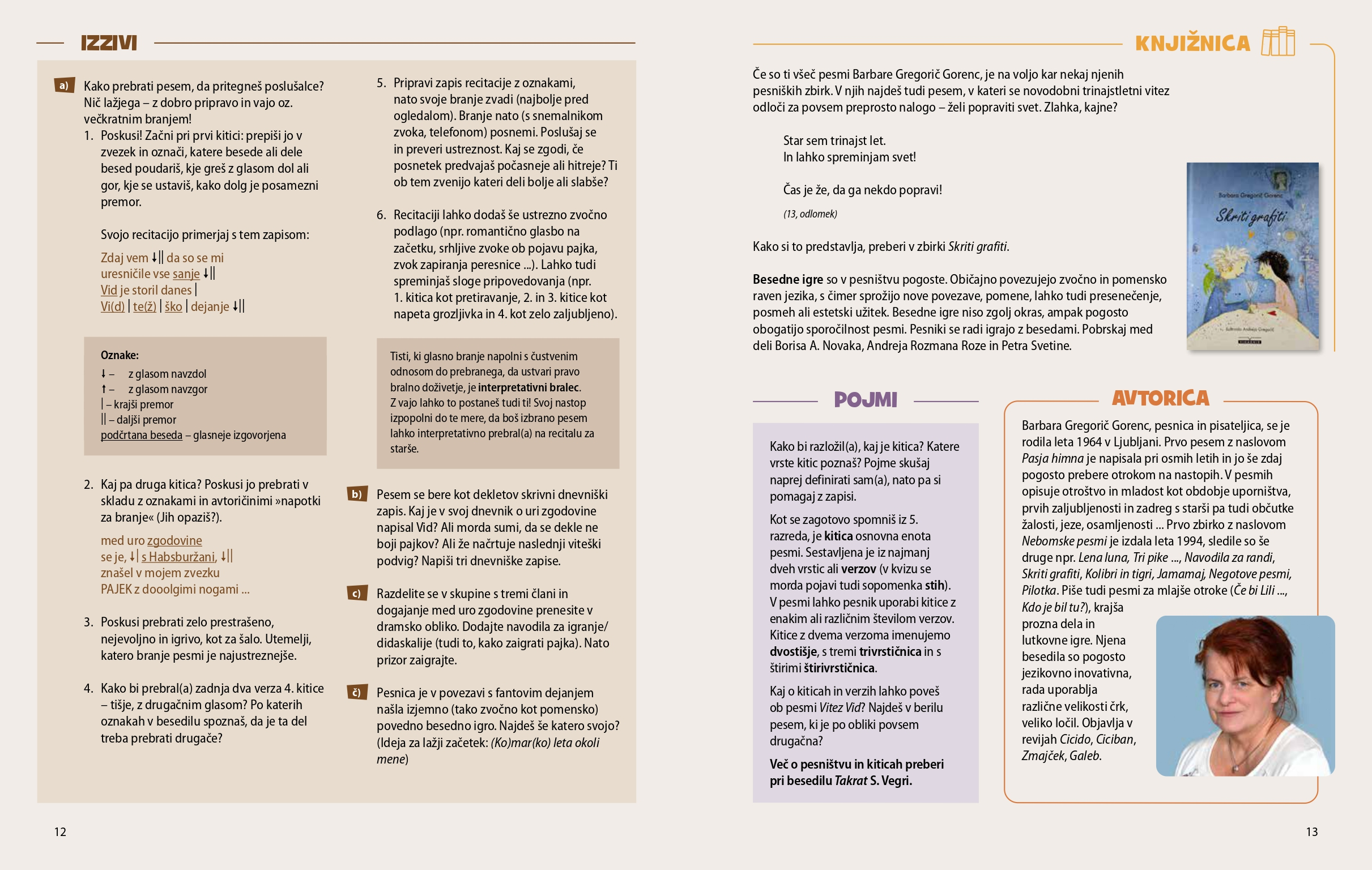 - definicije literarnovednih pojmov ter predstavitve avtorjev in avtoric z nagovori mladim bralcem,