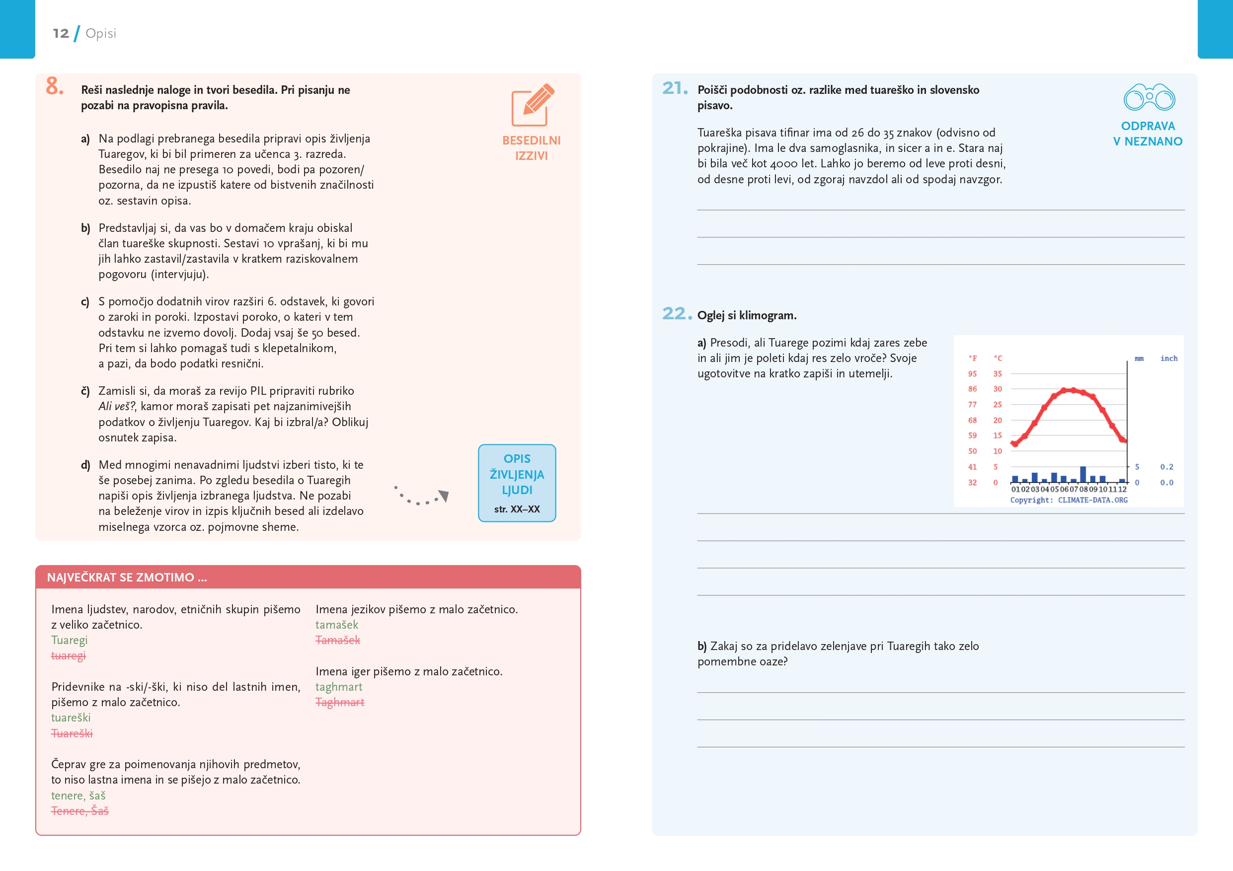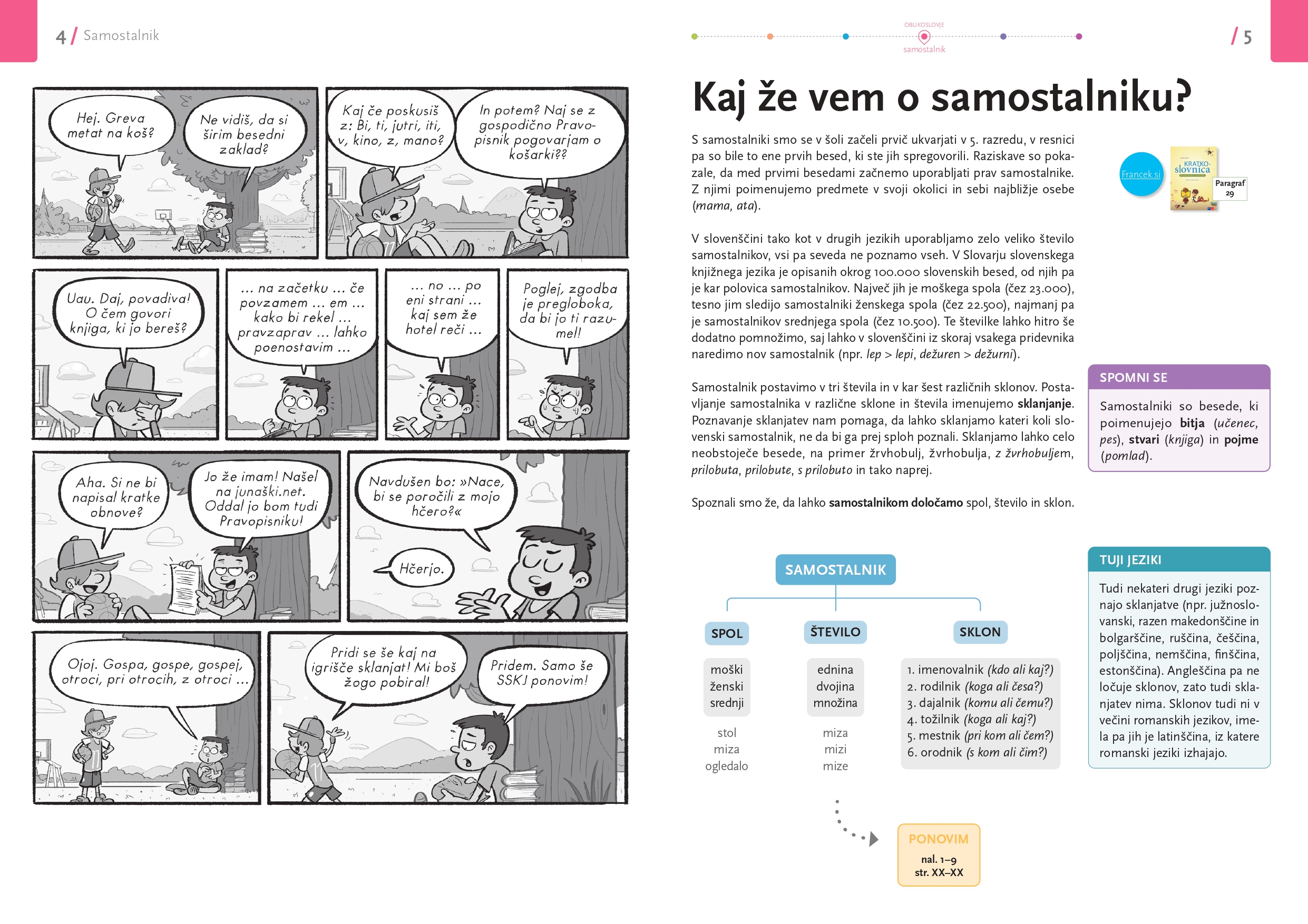 Učbenik prinaša razlage in orientacijo v snovi, delovni učbenik pa več prostora za samostojno delo, utrjevanje, dril vaje in preverjanje znanja.